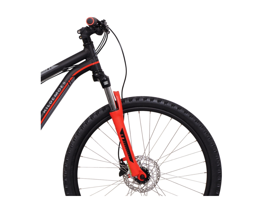 Fjederforgaffelen sikrer en komfortabel og frem for alt mere sikker tur ved at absorbere bump og ujævnheder på vejen.